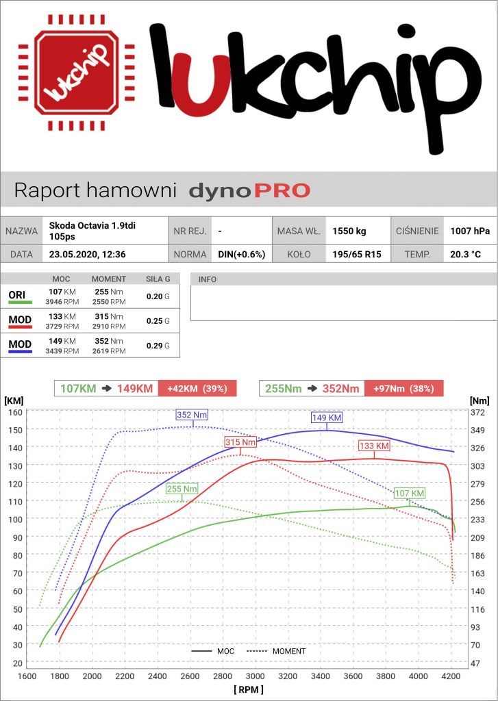 Po modyfikacji : moc 149 KM – moment 352 NM Stage 2